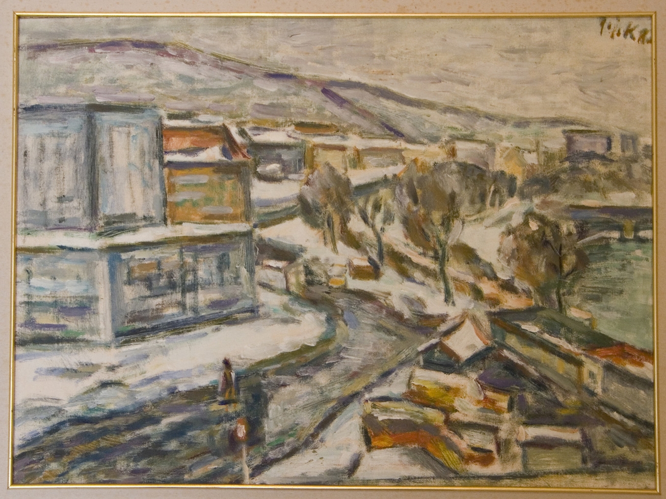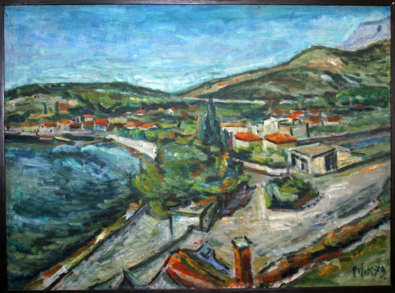 Drvenička Donja vala temom je monumentalnog platna čiju kompoziciju umjetnik snažno centrira gustim borikom. Harmonična kompozicija ostvarena je bojom i to u dojmljivom suglasju zelenog, narančastog i ljubičastog. Ovo djelo obilježava i zanimljiva perspektiva koju umjetnik postupno rastvara iz točke gledišta smješene u donjem dijelu prvog plana sve do široko otvorenog horizonta u vrhu kompozicije. Značajnu ulogu u širenju perspektive ovdje igra niz horizontalno raspoređenih narančastih faseta sadržanih u boji krovova u podanku drugog plana slike.