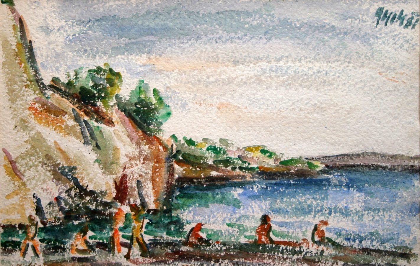 Akvarel Plaža Nugal, amblematski je Gojakov rad kojim jasno odiše punina prostorne senzacije poznate makarske plaže. No, autor se ne zaustavlja samo na prikazu prirode. Cjelovitost svoje stvaralačke zamisli zaokružuje ističući ležernost ljeta i afirmirajući atmosferu dokolice. Kupači postavljeni u prvom planu raspoređeni su kao na kakvom podiju među fino ugođenim taktovima mora i kamena.